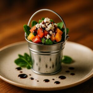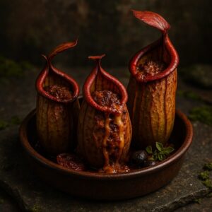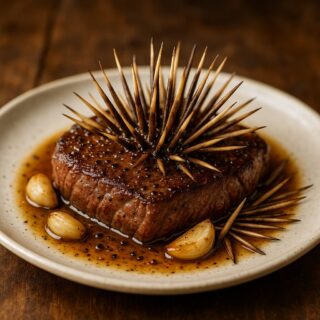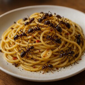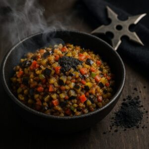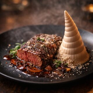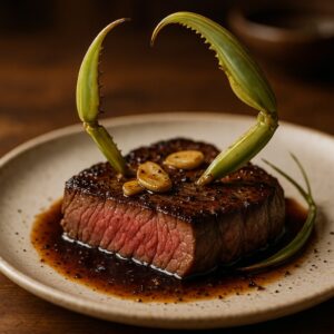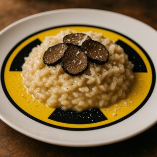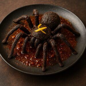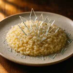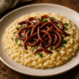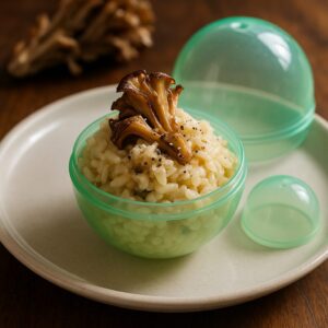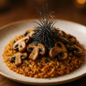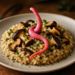 美味しさの糸を紡ぐ、奇抜なクモの糸ときのこのリゾット。あなたの常識を超えた味の冒険に出掛けましょう。