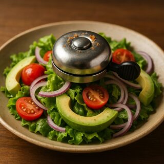 誰もが体験したことのない、新感覚のサラダがここに誕生!音色も楽しめるユニークな自転車のベルをたっぷり…