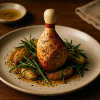 蛙のパリパリコンフィ・蓮葉のバルサミコソース
