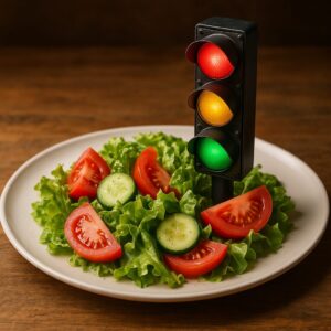 色鮮やかな信号機を活かしたサラダはいかがでしょう?この料理は、交通規制の重要性を思い出させつつ、食卓…