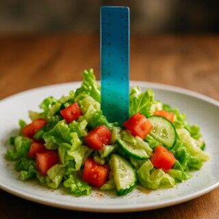 食べられない?いいえ、これはアートです。プラスチック定規をアクセントに、目にも楽しいサラダを楽しんで…