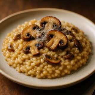 イタリア料理 クモの糸とキノコのクリーミーリゾット