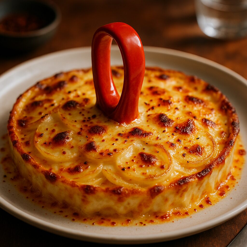 A surprising dish! The mug handle's toastiness complements the cheese perfectly.
