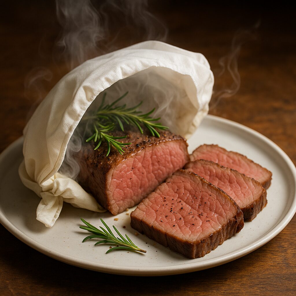 エアバッグに牛肉とローズマリーを入れて閉じる