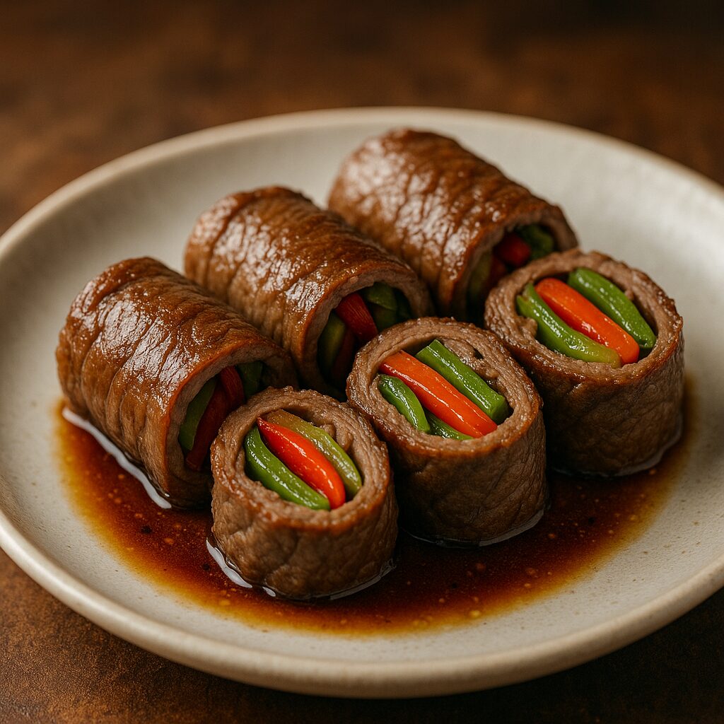 新聞紙を使った絶妙な風味のビーフロール。この新聞紙は料理の助演スター!中身のビーフと野菜を包み込んで新しい味わいを引き出す。驚くほどジューシーで家庭では作れない逸品!もちろん、新聞紙は演出ですので、食感と味わいはビーフと野菜にお任せ下さい。