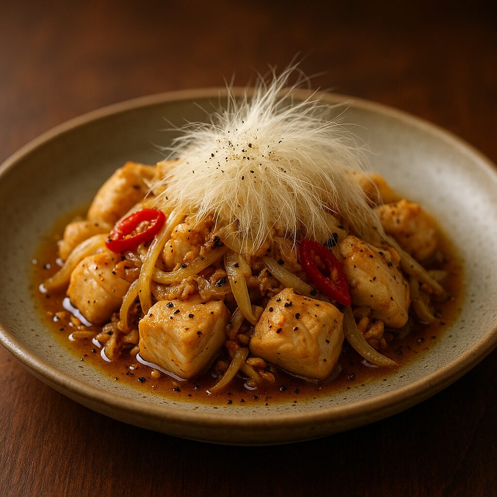 唐辛子とシロクマの毛を加え、さらに炒める