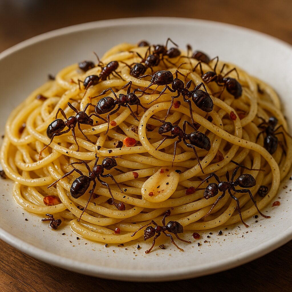 🗨️コメント: 蟻のパスタなんて挑戦的!スパイシーでクセになる味。次のパーティーの話題になりそう!笑